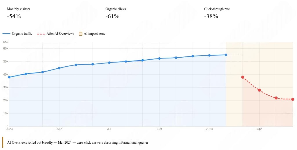 - A collapse in traffic for blog posts, how-to guides, and FAQs
